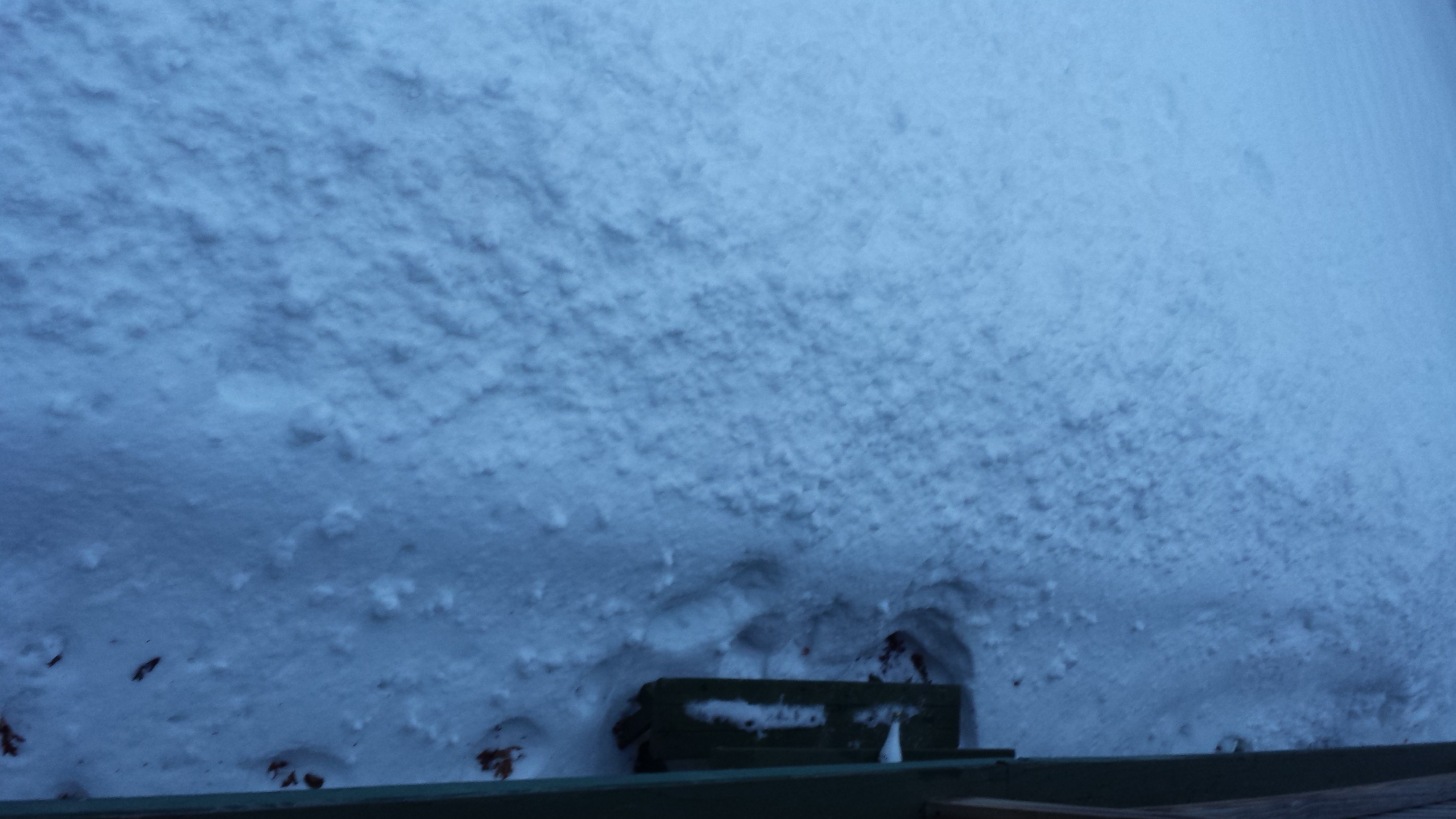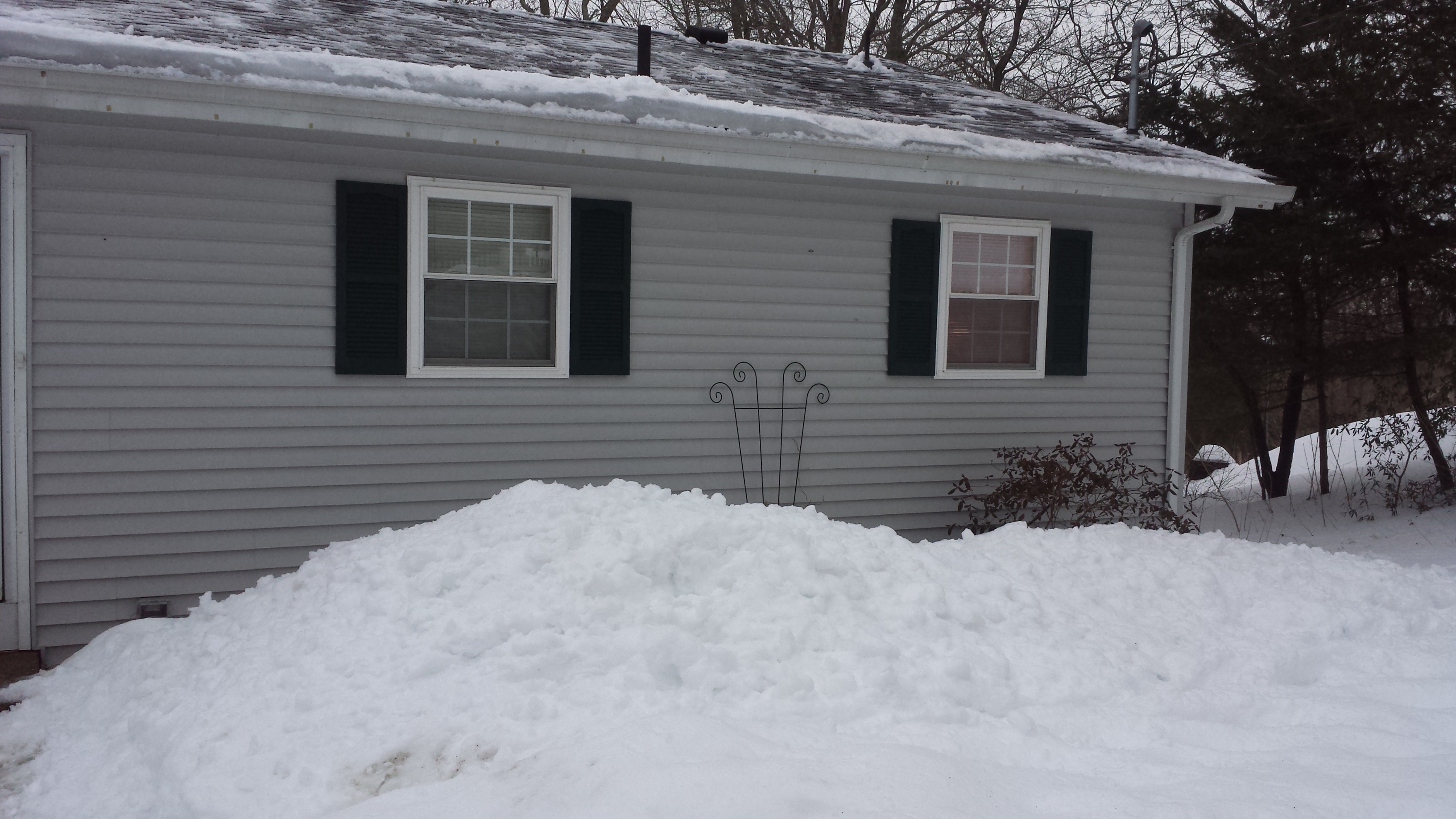 Okay, so actually today we had the roof de-snowed. That’s why there’s a fresh looking pile of the white stuff in front of the house there. But the snow piled up around the fence that we’re constantly moving to unblock the gate? That’s for realsies.